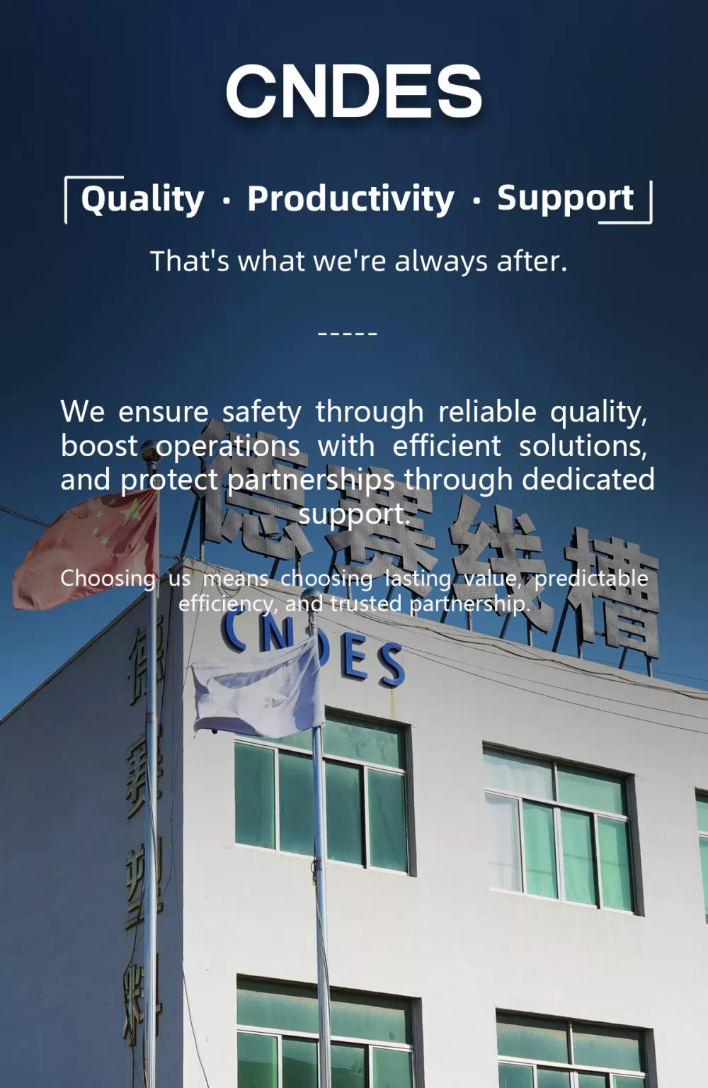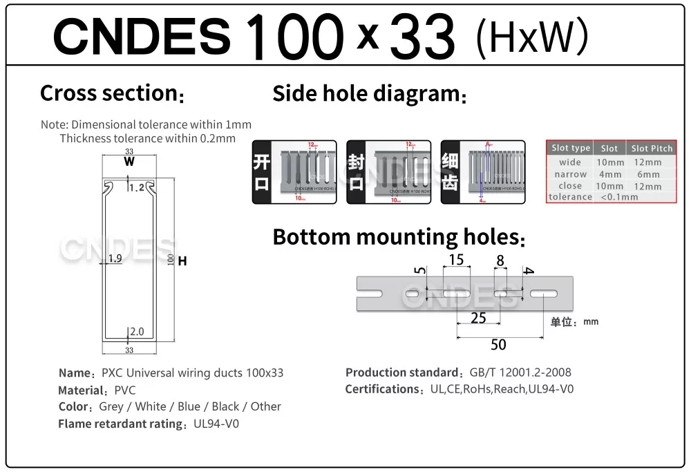 CNDES 24 illik təcrübəyə malik peşəkar kabel naqilləri istehsalçısıdır və Xüsusiləşdirilmiş 100 mm Hündürlükdə Açıq Yuvalı PVC Qapalı Naqil Kanallarının istehsalında ixtisaslaşmışdır. Burada 100 mm hündürlükdə kabel tray seriyası məhsulları təqdim edəcəyik.