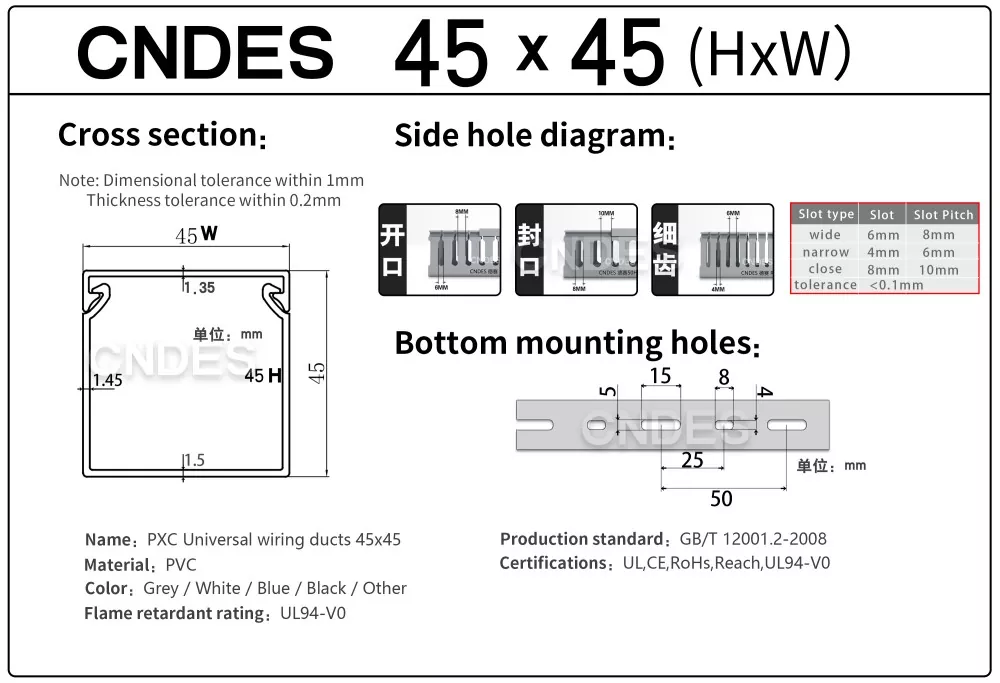 Peşəkar istehsalçı olaraq biz sizə 45 mm hündürlükdə CNDES Yivli PVC Tel Qapaq Kanalını təqdim etmək istərdik. O cümlədən 45*25, 45*33, 45*45.