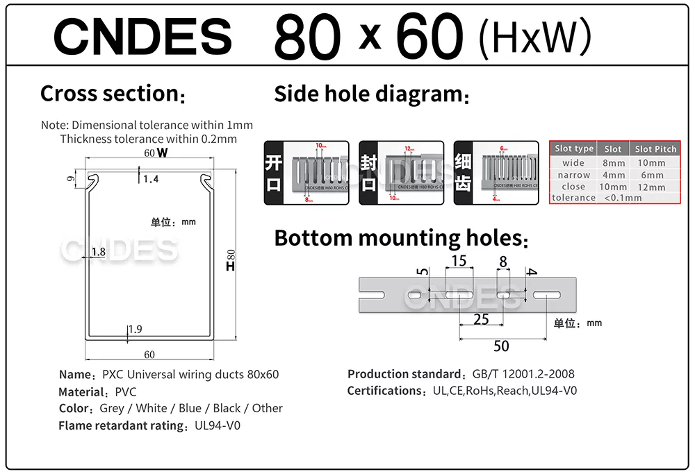 Burada sizə 80*60mm, 80*60 spesifikasiyalarımızı təqdim edəcəyik. Hündürlüyü 80mm və eni 60mm məftil kanalını təmsil edir.